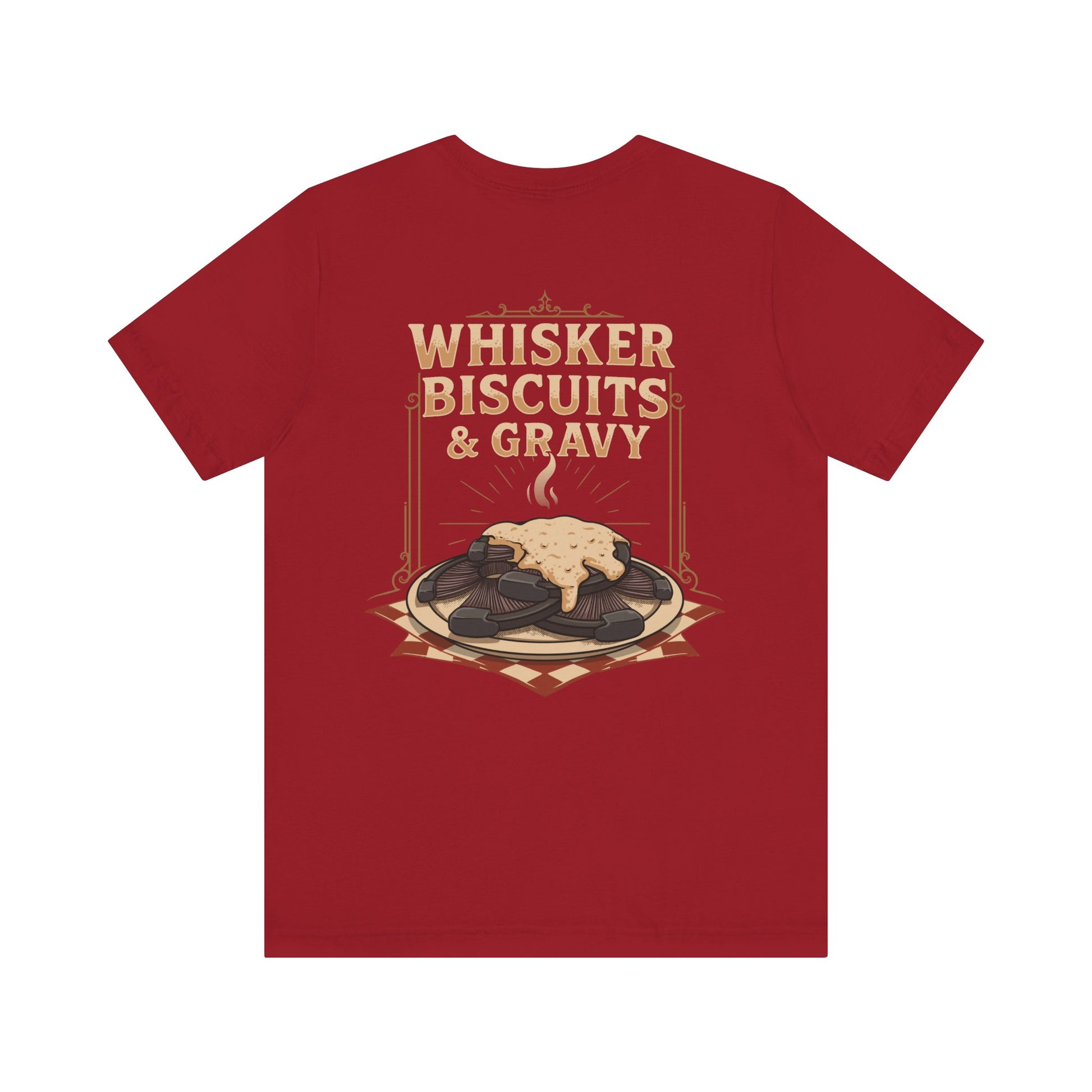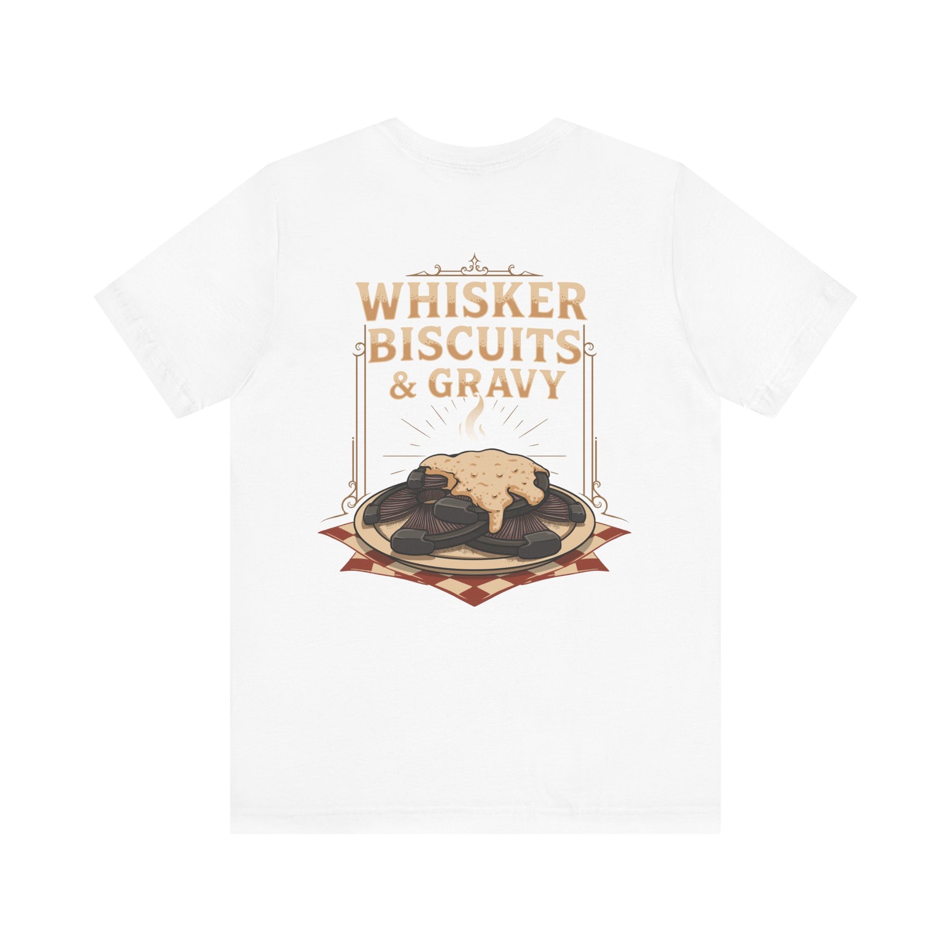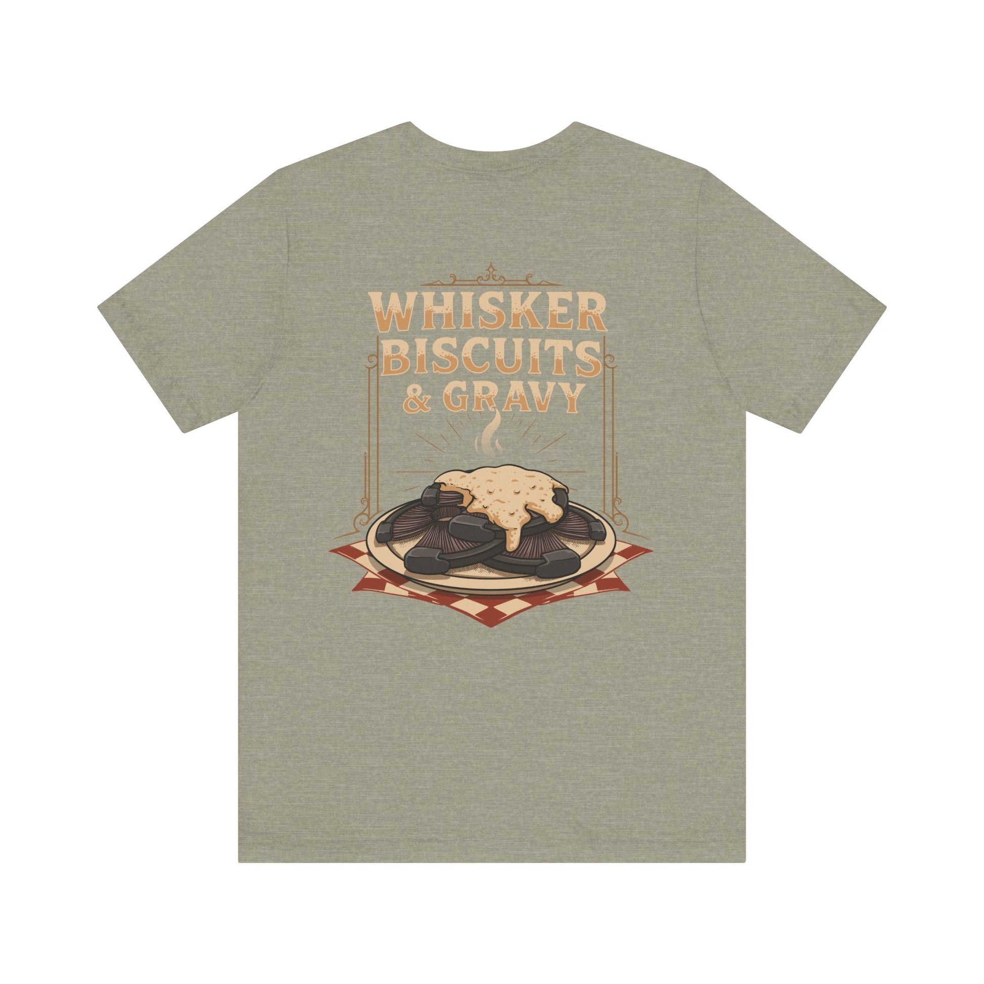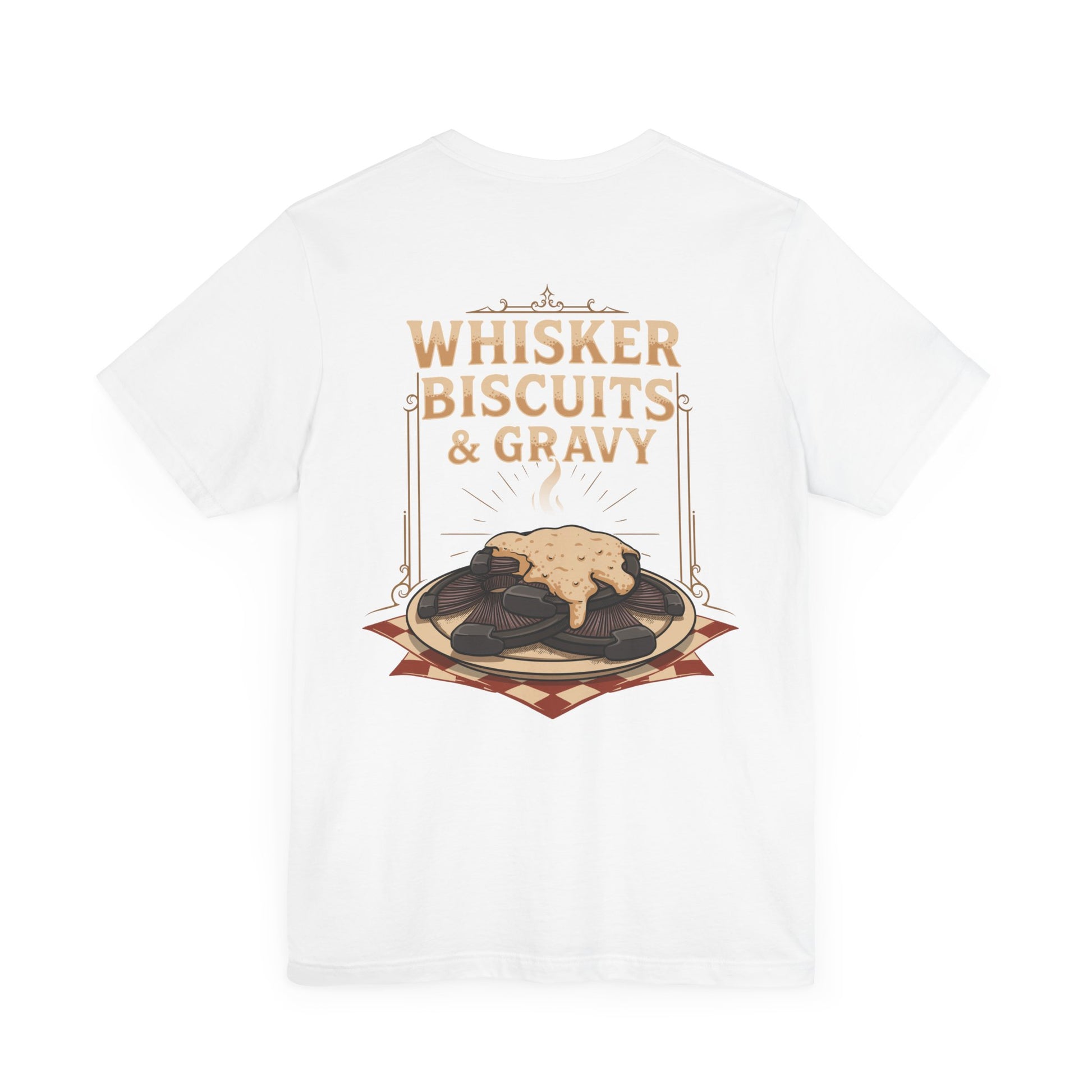 This ain't your grandma's breakfast. Featuring a piping hot pile of Whisker Biscuits in steamin’ hot gravy, this shirt delivers a hearty helping of style for the hunter who lives for early mornings, tree stands, and down-home meals after the shot.